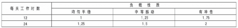 用戶可根據實際工作製和負載性質參照服役係數表,計算後確定減速電動機的功率與型號。