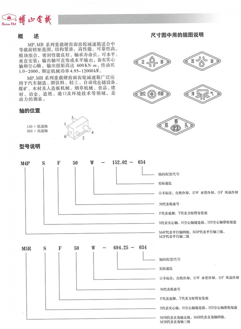 MP.MR係列重載硬齒麵齒輪減速箱適合中等載荷轉矩範圍,結構緊湊,高性能,可靠性高。模塊組合,密封性能良好,軸承壽命長。可水平、垂直安裝;輸出軸可直角或水平輸出,備有實心軸和空心軸。輸出扭矩高達600KN.m,傳動比1.0- 2000,額定機械功率4.95- 12000kW。MP.MR係列重載硬齒麵齒輪減速箱廣泛應用於汽車製造、酒飲料、輕工、自動化倉儲設備、煤礦、木材及人造板機械、煙草機械、食品、建材、冶金、造紙、港口及環境技術等領域,是動力的源泉。