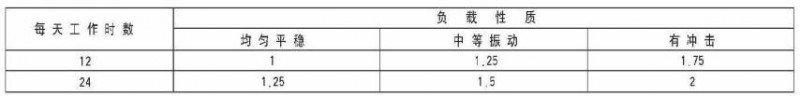 用戶可根據實際工作製和負載性質參照服役係數表,計算後確定減速電動機的功率與型號。